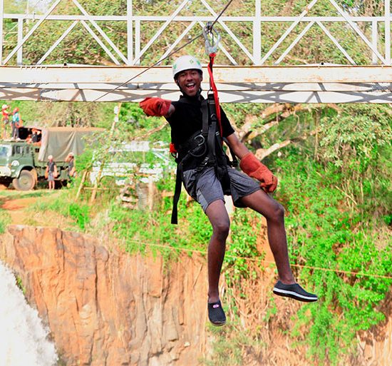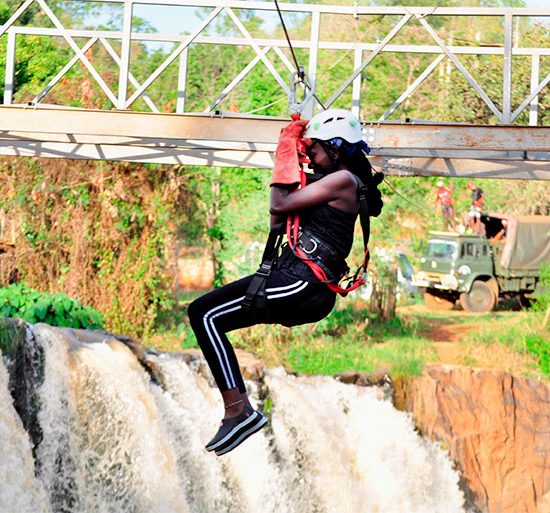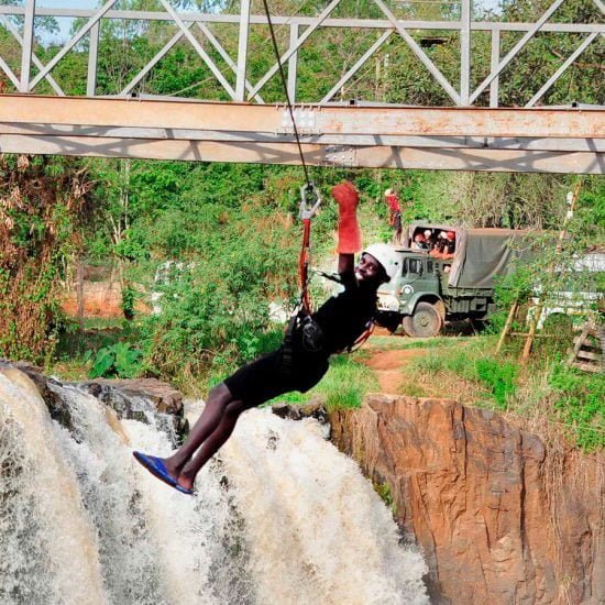 Rapids camp has one of the most spectacular Zipline in Kenya. Though we have long Ziplines in Kenya, Rapids Camp Zipline remains as the most scenic and beautiful Zipline in Sagana, Kenya and Africa cutting across one of the largest and magnificent waterfalls in Kenya and magnificent footbridge in the Kenya. You can combine Zipline and White water rafting, Kayaking, Bungee jumping, Nature walks, Birds watching, and corporate team building all combined in one location at Rapids Camp Sagana.