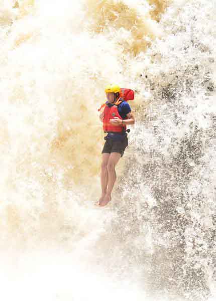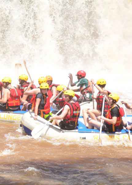 The Waterfall Challenge is perfect for adventure enthusiasts looking to test their physical and mental limits paddling the raft together as family, schoolmates, or colleagues. While paddling the raft you feel the power of the roaring rapids waterfall a scene which is unmatched.
